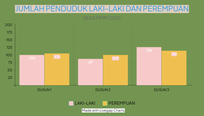 Dusun 1 laki-laki berjumlah 100 jiwa, perempuan berjumlah 105 jiwa